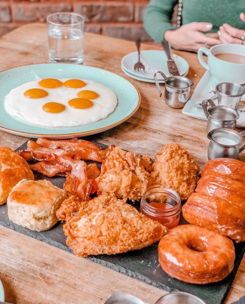 Whether you’re looking to celebrate a special occasion or just treating yourself to some fine dining, 5Church is a must! Their state of the art interior design and sophisticated ambiance is the perfect setting for all your brunch lovers. This former church, located on N Market Street, has been remodeled into one of Charleston’s top restaurants. The structure’s original stained glass windows and arched roof will immediately capture your attention. Upon walking into 5Church it’s hard to miss Sun Tzu’s, “The Art of War”, text that has been transcribed onto the ceiling. 5Church’s exquisite brunch menu features a great deal of southern comfort food. If you are an Eggs Benedict lover, the Keegan Filion Farms Pork Belly Benedict will blow your mind. This dish features their own house-made English muffin, topped with wilted spinach, tomato marmalade, locally-sourced poached eggs, and whole-grain mustard hollandaise. The Holy Sh*t Breakfast is the perfect entrée to share. The dish is plated with fried chicken, Gili-West Farms eggs, bacon, house-made donuts, biscuits, and house-made jam. It also comes with your choice of one mimosa or Bloody Mary; the entire meal goes for $25 a person (mandatory two-person minimum). If you’re trying not to break the bank, 5Church also offers $9 avocado toast and $13 mimosa carafes. Sadly, 5church’s brunch menu is only served on Saturdays and Sundays so be sure to plan accordingly so you don’t miss out!